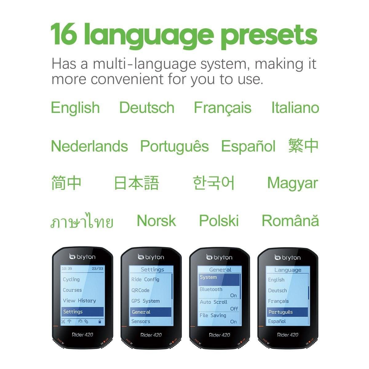Bryton Rider420 420 420E Rider320 320 320E GPS Bike Computer Bicycle Japanese Italian German Portuguese Spanish Cycling Odometer