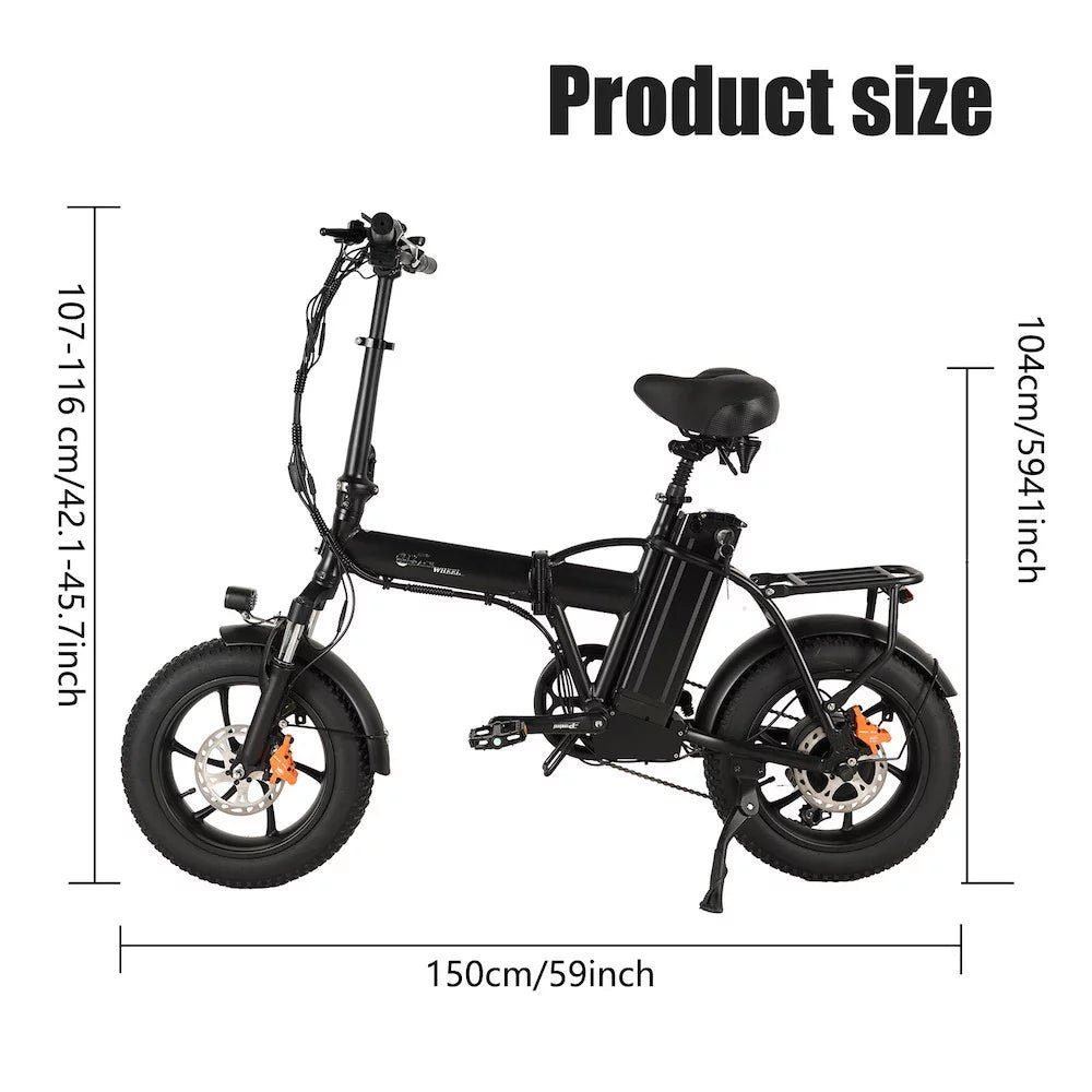 The Cmacewheel AC16 Portable Electric Bike combines power, portability, and convenience in one sleek package. With a 350W motor, 48V 18Ah battery, and three versatile riding modes, this e-bike offers the performance you need for urban commuting or off-road adventures. The hydraulic brakes ensure safe and reliable stopping, while the big seat with a shock absorber and fat tires provide a smooth, comfortable ride on any terrain. Whether you need a reliable e-bike for everyday commuting or weekend explorations, the Cmacewheel AC16 delivers an outstanding riding experience that’s easy to enjoy and even easier to take on the go, thanks to its foldable design.