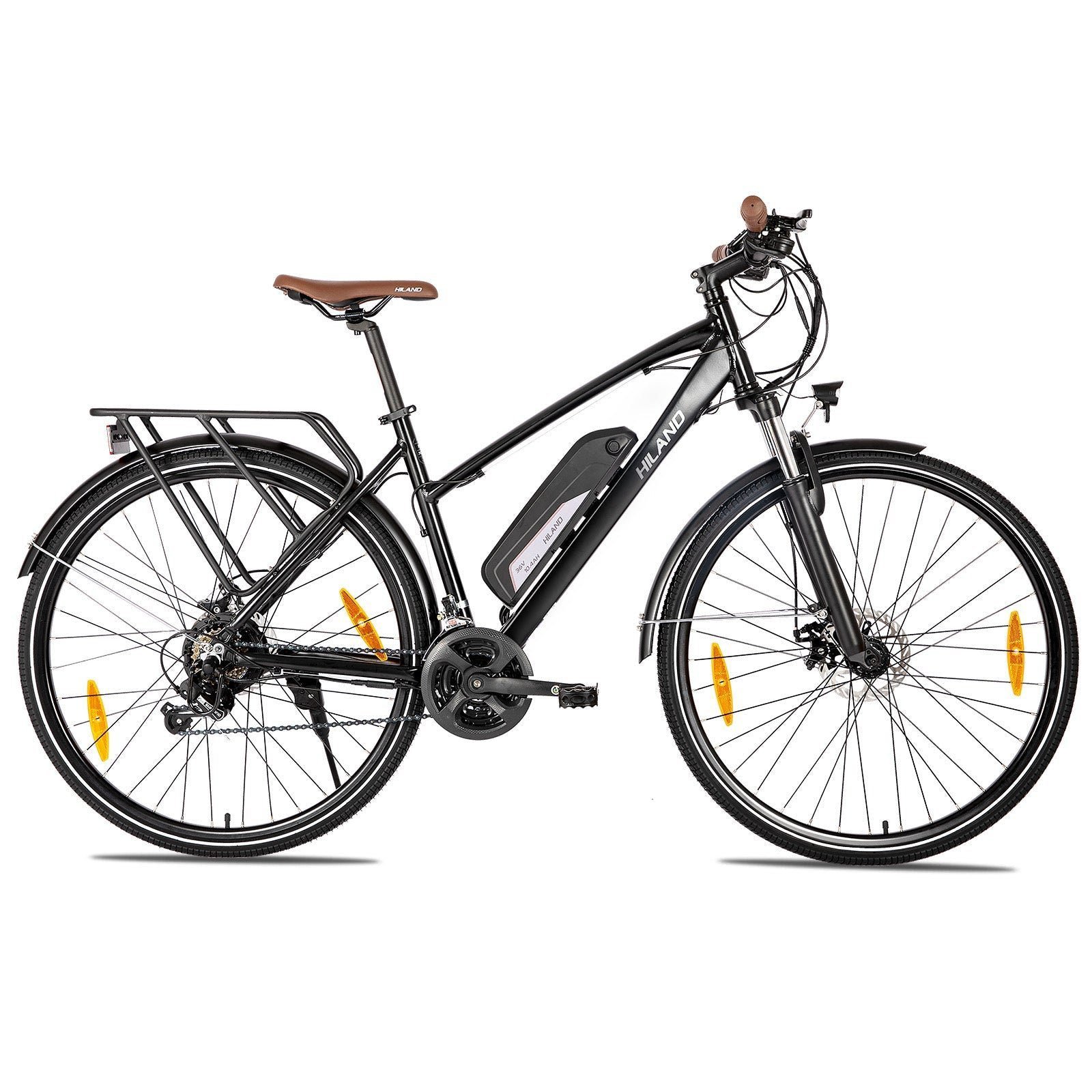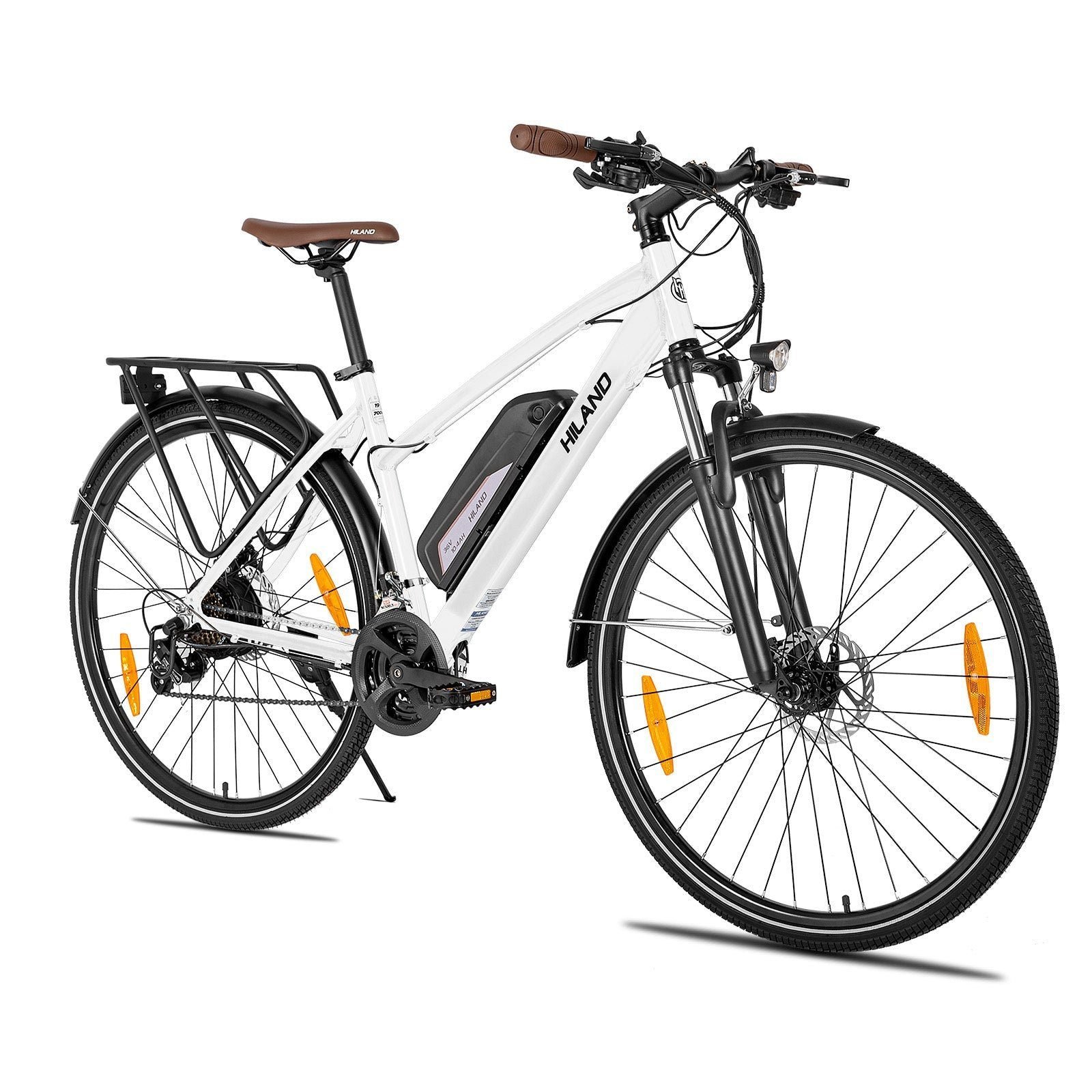 The frame is constructed from durable 6061 aluminum alloy, and the bike is available in a custom silver color with the HILAND logo.