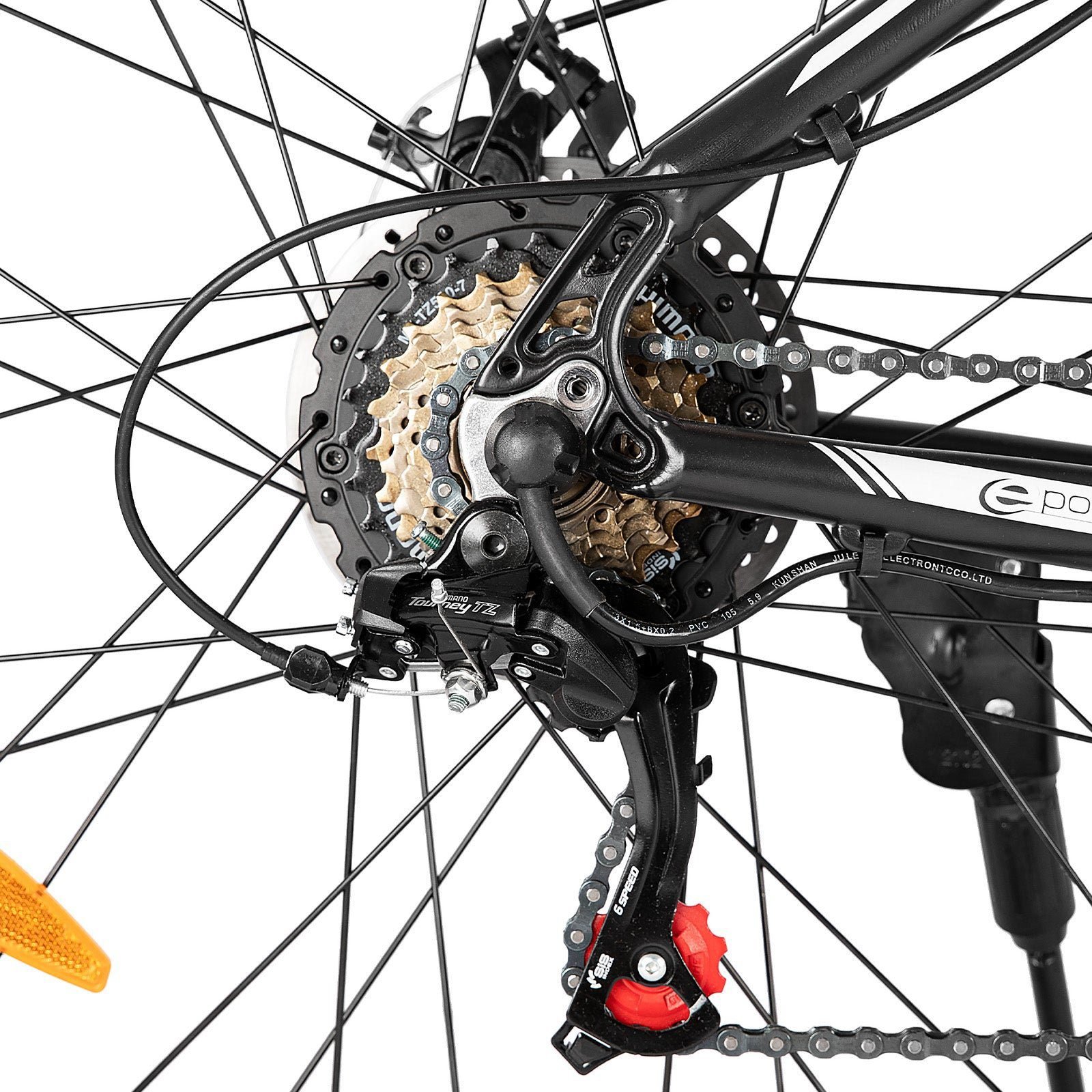 The Pogo EHD004 27.5 Inch Electric Bike is equipped with a versatile 21-speed gearing system, allowing you to navigate through various terrains with ease. Whether you’re tackling steep inclines or cruising on flat surfaces, this bike ensures a smooth and adaptable riding experience.