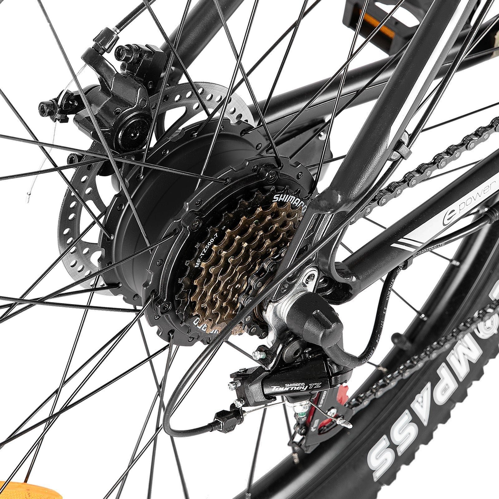 The rear hub motor enhances the bike’s performance by providing balanced power distribution and a smooth riding experience. This motor configuration ensures that you get the most out of each ride.