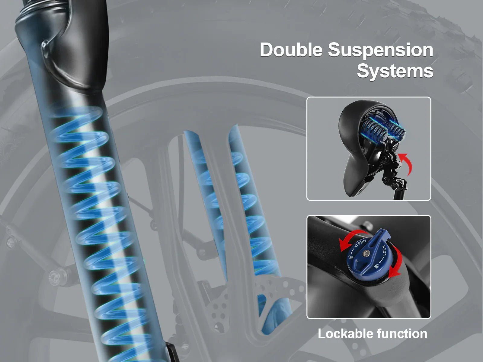 Utilizing adjustable dual front fork shock absorbers and seat suspension, it effectively doubles shock absorption, ensuring a smooth and stable journey even on the roughest terrains. Bid farewell to uneven road conditions as you welcome a ride characterized by unparalleled comfort and enjoyment.