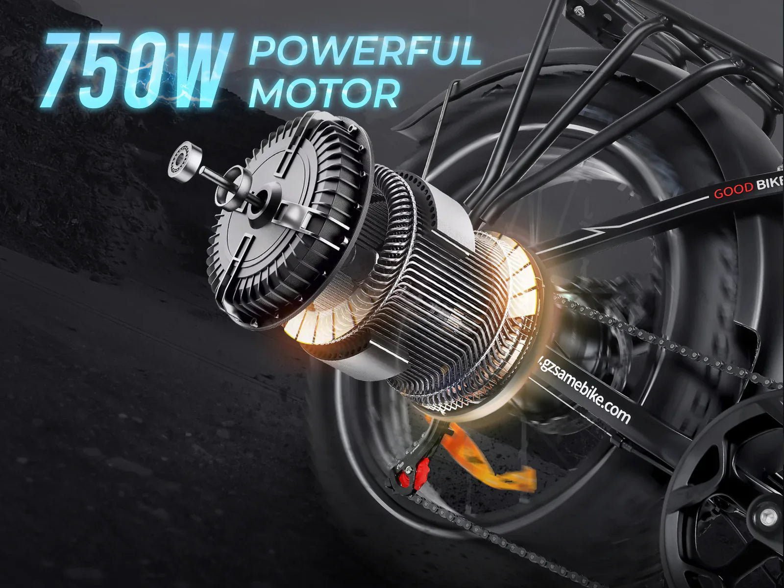 20*4 inch fat tire with powerful off-road capabilities and stable riding performance. The ultra-wide tire design provides excellent grip and balance.
